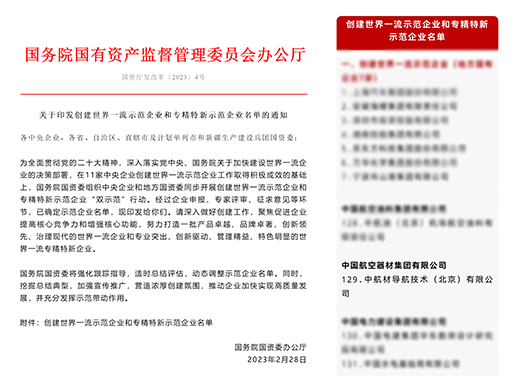 中航材導(dǎo)航技術(shù)公司(以下簡稱“公司”)成功入選,成為全國首批世界一流專精特新示范企業(yè)之一。