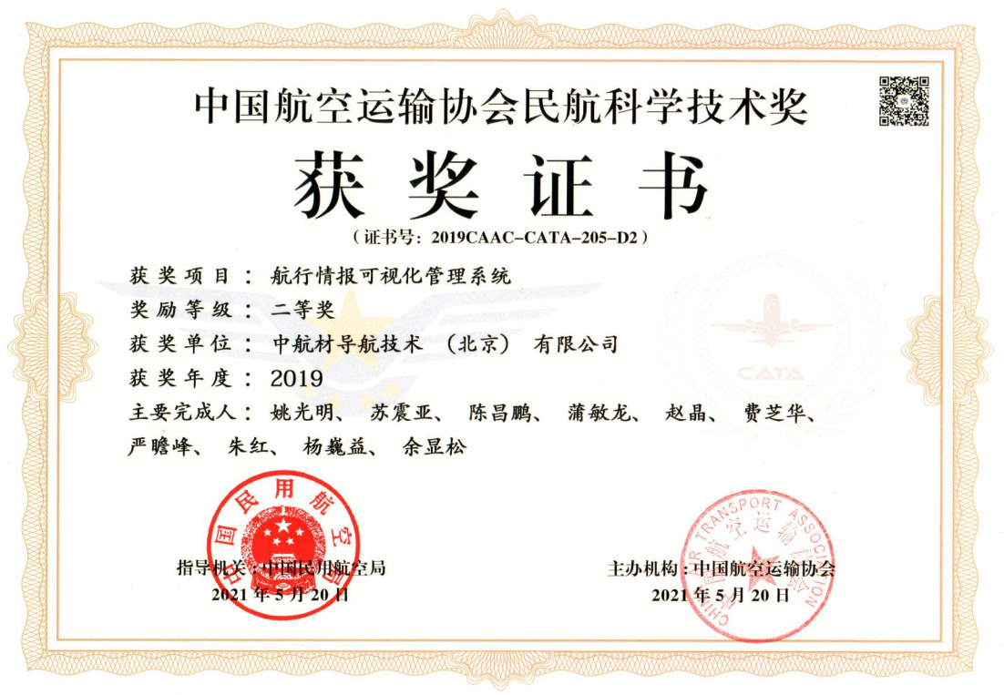 ● 并獲得2019年度中國航協(xié)民航科學(xué)技術(shù)獎二等獎。